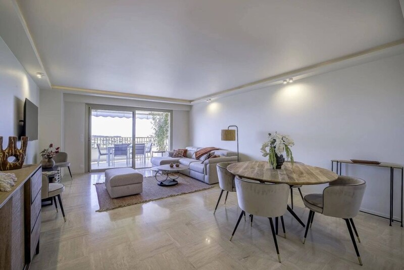 This stunning design-style 3 bedrooms apartment offers unparalleled elegance in the prestigious Cannes Californie area in the luxury residence "Le Rocher Saint Georges" with garden , swimming pool and concierge. Entrance with bathroom for guests, bright living room, the master bedroom on the sea side with shower room/wc and dressing room, beautiful fully equipped independent kitchen, 2nd bedroom with a bathroom/wc and 3rd bedroom with shower room/wc with an independent exit access if necessary. The place is complemented by a garage and a cave. This apartment is ideal for those seeking a blend of sophistication, comfort, and scenic beauty in one of the most sought-after neighborhoods of Cannes. Share of charges 590 euro/month. Sales commission payable by the vendor included in the price. Information on the risks associated with this property is available on the Géorisques website: georisques.gouv.fr.