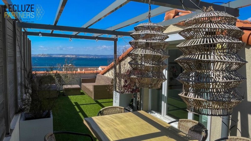 LECLUZE PARTNERS by Keller Williams offers you a magnificent contemporary duplex with incredible sea views in Marseille 8th. Discover this modern and contemporary penthouse located in the most popular area of the 8th arrondissement of Marseille. Offering more than 133 m² of living space, this 3-bedroom apartment, completely renovated with quality materials, is a real gem on the top floor of a recent building with elevator. Breathtaking views where you can admire the magnificent panoramas of the sea and the Calanques massif (Marseilleveyre) from the apartment and its private terraces. On the ground floor, enjoy a beautiful 55 m² living room with a lounge area and a fully equipped open kitchen. Custom-made furniture, cathedral ceiling height, and direct views of the sea and Marseille vert make this apartment bathed in natural light. Two bedrooms, a bathroom, a laundry room and a first terrace complete this level. Upstairs, a 24 m² master suite awaits you with a beautiful corner bathtub and a 30 m² rooftop terrace offering a 360° view of the city's most emblematic places. This duplex includes an alarm system, videophone and a double garage. Ideal location with close proximity to shops such as a casino at the foot of the building, parks and restaurants, and above all only 3 minutes walk from the 3 most beautiful beaches in Marseille. This apartment is perfect for lovers of the city/village mix life. Perfect for your main residence or second home. Don't miss this unique opportunity to live in an exceptional setting combining modern comfort and spectacular views. Energy performance diagnosis: Consumption B - 102 / Greenhouse Gas A - 3. For more information and visit, contact Julien Lecluze at 06 23 86 71 85 or julien.lecluze@kwfrance.com. (EI) -RSAC 453 868 515 Information on the risks to which this property is exposed is available on the website georisques.gouv.fr In accordance with article L.561.5 of the Monetary and Financial Code, please provide proof of identity when organizing the visit. Information on the risks to which this property is exposed is available on the government's Géorisques website.