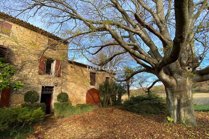 Located at the crossroads of Provence, Les Alpilles, Pays d'Aix and Luberon, just 35 minutes northwest of Aix-en-Provence, this old stone farmhouse dates back to the 19th century. Secluded away back from the roadside in the verdant surroundings of a natural plateau, the property boasts a magnificent view of the Luberon mountains. In need of renovation, it offers about 310 m² of living area on 13 hectares of private grounds. The property features a stone swimming pool (12.5 x 5 m), a spring, farmland, vineyards and olive trees. Great renovation potential. An authentic Provencal property. Not overlooked.