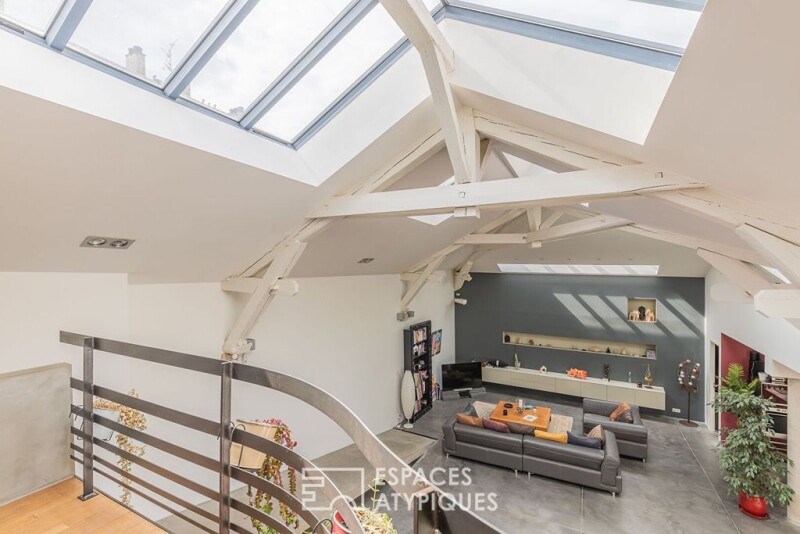Ideally located just a stone's throw from the station, this superb 168 m² loft has been converted from a former paint shop to create a sleek, urban feel. It has a patio and a terrace, so you can enjoy the outdoors while being protected from prying eyes. The entrance hall opens onto the living space, the true heart of the home, with its impressive high ceilings revealing the beams of the exposed roof frame. Overlooked by numerous zenithal windows, the room is bathed in light, creating an atmosphere that is both original and peaceful. The open-plan kitchen and dining area are tucked away under a return of the building, distinguishing it from the living room while allowing light to flood in. Large bay windows define the transition to the patio. Accessed via a brutalist-style ramp, a mezzanine overlooking the living room leads to the master suite with its private terrace and shower room. Two further bedrooms and a bathroom are tucked away under the roof in the other wing of the building, offering the prospect of an independent children's area. A study and storeroom complete the facilities in this unusual residence with its distinctive architectural style. Energy class D / Climate class: D Estimated average annual energy costs for standard use, based on 2021 energy prices: between euros1,680 and euros2,320. Contact: Valentine 06.63.32.39.79 Condominiums of 30 units (No proceedings in progress). Annual expenses : 881 euros.
