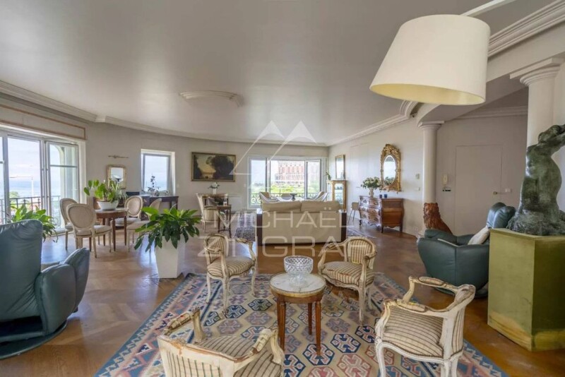 We would like to open the doors to this magnificent family flat of around 200 m2 with uninterrupted views of the ocean and the Hôtel du Palais. Set in the history of Biarritz, in the heart of a period residence with concierge and lift, this particularly bright property with exceptional volumes invites you to relax. Benefiting from triple exposure, this high-quality property comprises a large entrance hall leading to two suites, one of which has a bathtub and ocean views, a separate fitted kitchen, two bathrooms, two saunas, a rotunda-style living room with five large windows opening onto a balcony ideal for enjoying an aperitif or breakfast, a laundry room and two toilets. The rotunda reception room, herringbone parquet flooring and majestic columns add a touch of prestige to this luxury flat. An independent studio is also available, offering a great opportunity to welcome guests or to be used as an office or third bedroom. Additional parking is available nearby. Information on the risks to which this property is exposed is available on the Géorisques website: www.georisques.gouv.fr État des risques et pollution: réalisé (2024-05-30).