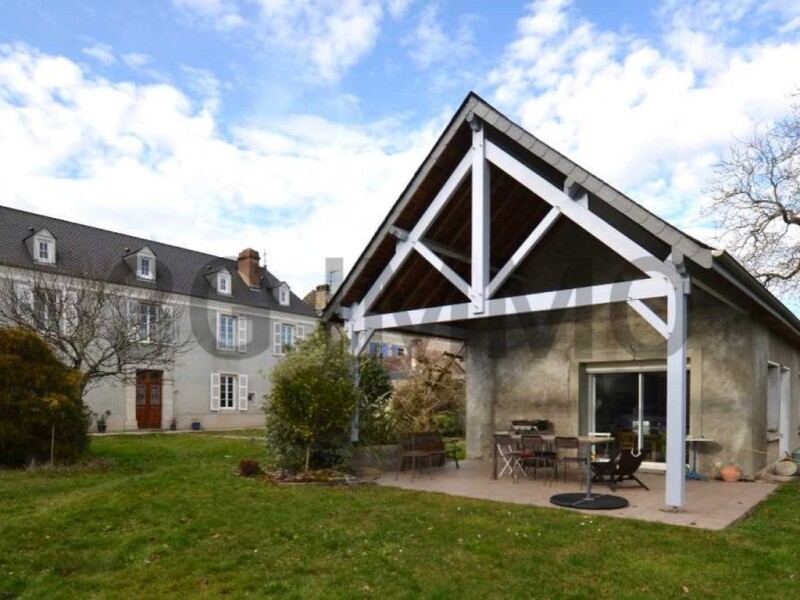 Character house with outbuildings and a large wooded garden. In the heart of the village of Bordes, this magnificent late 19th-century residence nestles on a lush 3,600 m² plot. Authentic and full of charm, it offers approximately 230 m² of living space spread over two levels. Upon entering, you'll be captivated by the reception room of over 30 m², featuring a majestic fireplace. A cozy living room with an insert fireplace, an office, and four bedrooms complete the living space, providing ideal comfort for the whole family. Outside, the property is distinguished by its outbuildings: a house of over 50 m² and a barn with a new roof, perfect for a development or storage project. The garden, a true natural setting, is adorned with fruit trees, inviting relaxation and the pleasures of the outdoors. Fees payable by the seller Your 3G IMMO sales agent on site EI - Véronique GOYENAGA registered with the PAU RSAC n° 823 795 141 According to article L.561.5 of the Monetary and Financial Code, for the organization of the visit, the presentation of an identity document will be requested. Information on the risks to which this property is exposed is available on the Géorisques website: www.georisques.gouv.fr.