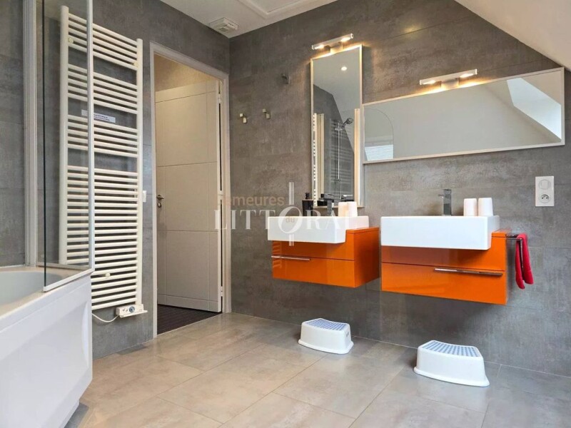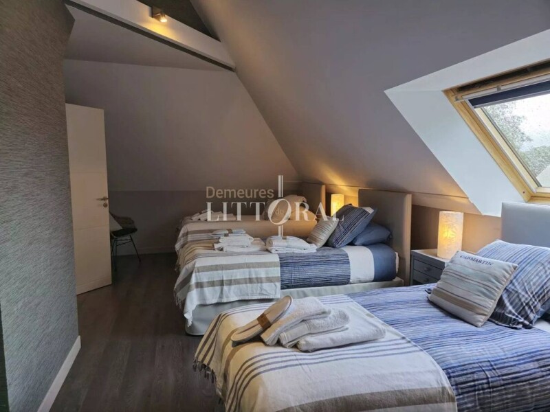 Sublime contemporary property offered by Demeures du Littoral. Bright and functional, this architect-designed house spans over 420 m², carefully built in 2010. Ideal for a large family residence, high-end guesthouse, or cottage rental business. Between the main house and the two outbuildings, you will have 9 bedrooms with 9 bathrooms. 3 kitchens, 3 living rooms, 3 dining rooms. Parking spaces, garage. This property is sold furnished and features a heated indoor pool, a sauna, and a steam room. Situated on a flat plot of over 2200 m², close to all amenities, and less than 20 minutes from the first beaches of the Gulf. For more information, contact Manuel COSTA at 06 69 07 51 27.