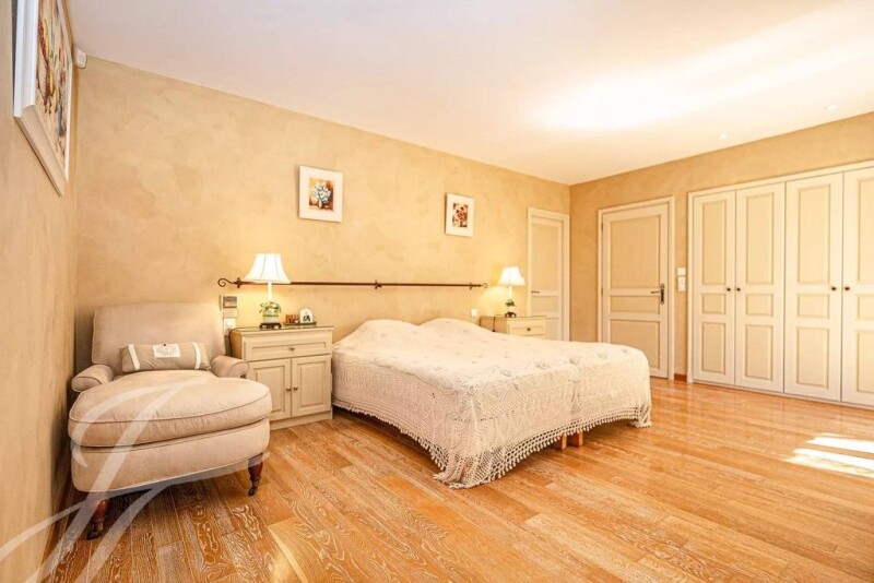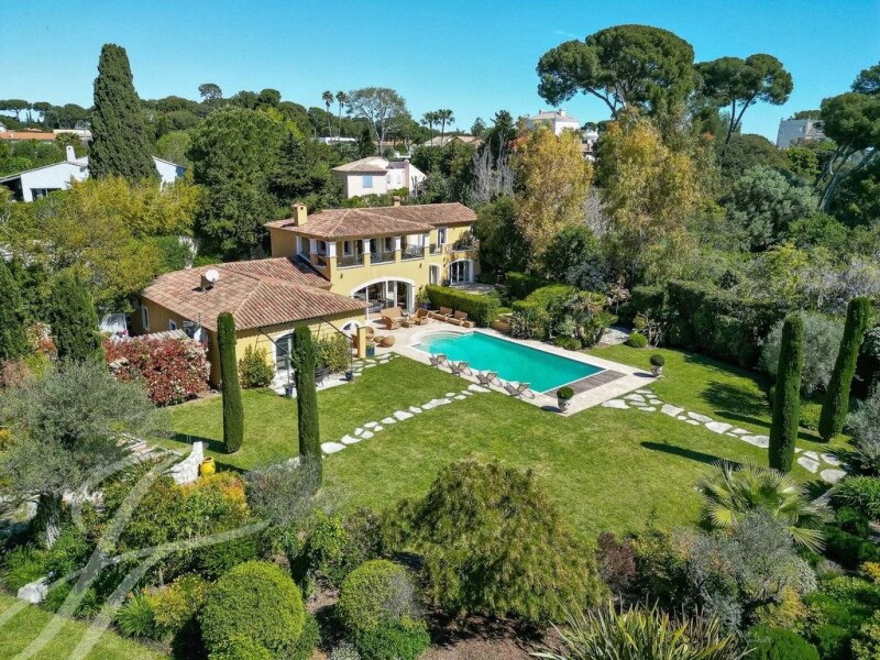 Nestled in the calm of Cap d'Antibes, this beautiful 481 sqm villa on two levels, just 5 minutes' walk from Keller beach, offers an exclusive and peaceful living environment. The first floor features a vast living room with piano, fireplace and library, a lounge with bar and fireplace opening onto a terrace with swimming pool, a fitted kitchen with dining area, and three bedrooms, including a 100 sqm master suite, each with its own bathroom. Upstairs, four bedrooms with balconies and bathrooms, plus a staff bedroom. The property is equipped with a camera surveillance system. The 4300 sqm flat grounds feature a fish pond, rose bushes, a fountain and a large heated swimming pool. Ideally located, this luxurious villa offers a haven of tranquility in the immediate vicinity of the beaches.