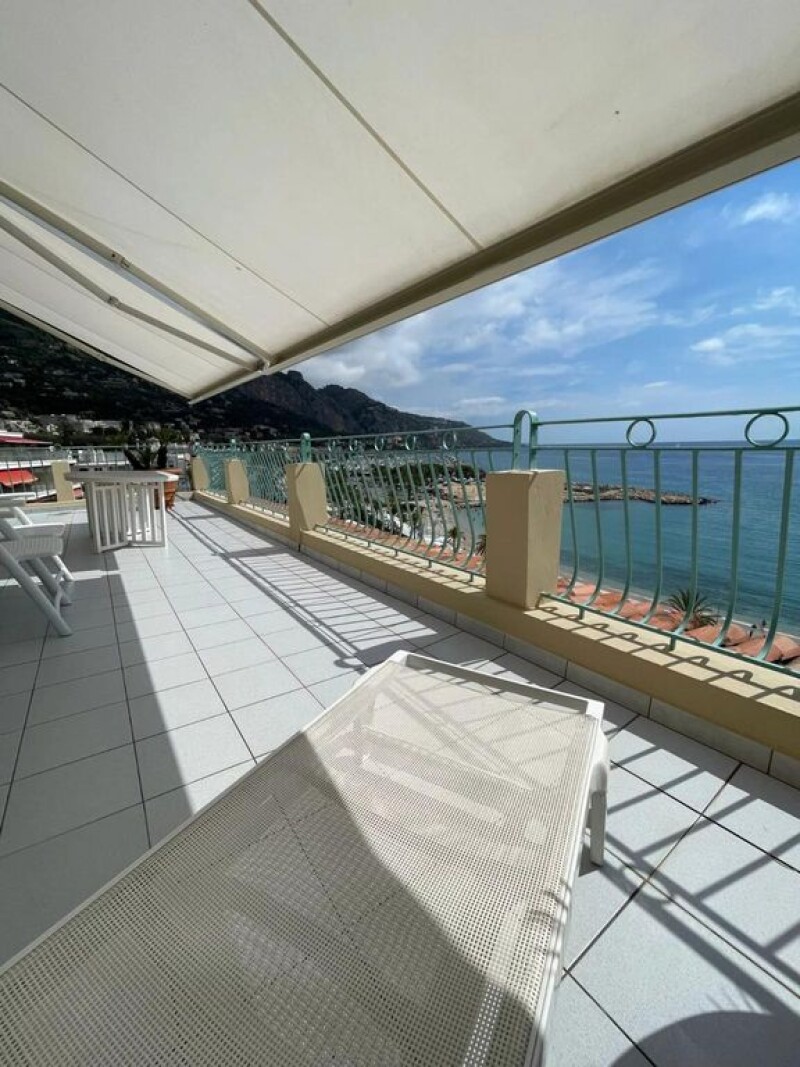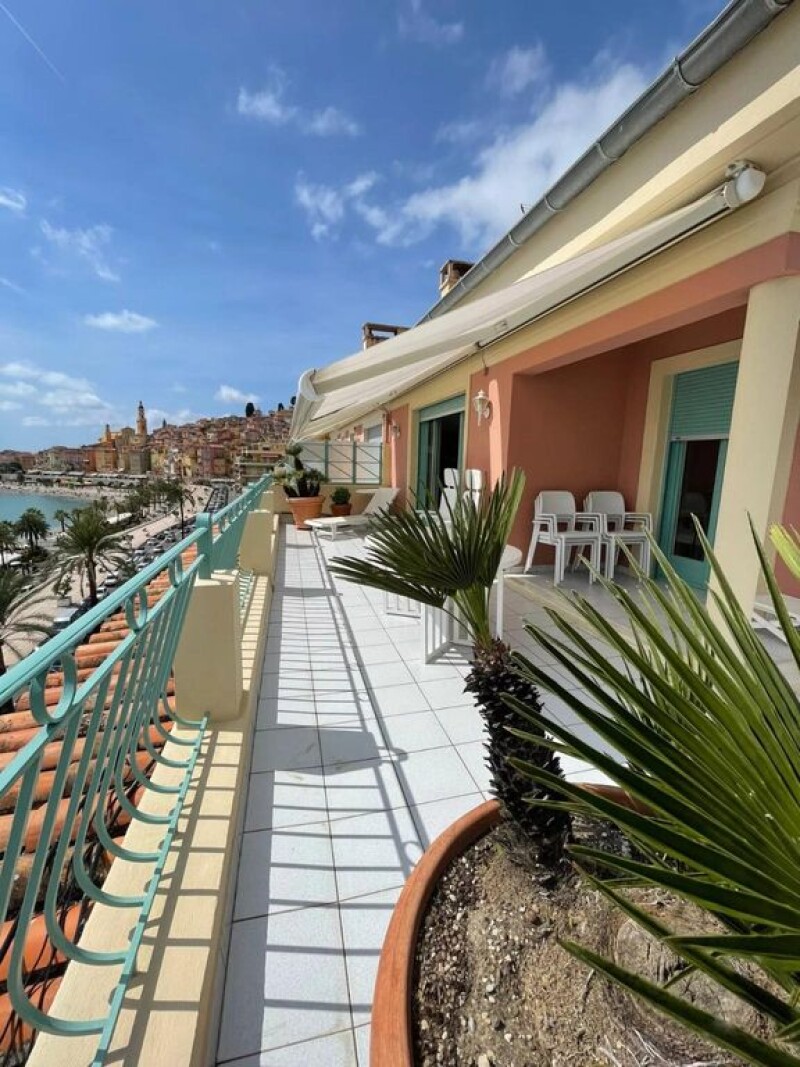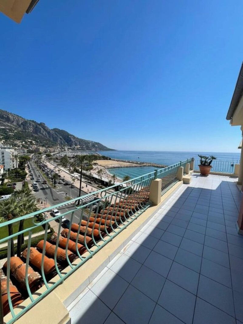Nestled atop an elegant 1930's residence, this radiant apartment exudes natural light and enjoys a prime seaside location in the prestigious Garavan neighborhood. As you step through the entrance, you'll be captivated by the welcoming ambiance of this harmonious living space. A spacious living room, complemented by a cosy dining area, flows seamlessly into a fully equipped independent kitchen, perfect for preparing delicious meals in tranquility. The master bedroom, generously sized and tastefully appointed, beckons you to relax and unwind. A thoughtfully designed dressing area and an adjoining shower room with toilet add a touch of comfort and practicality to this intimate space. Imagine enjoying your morning coffee or savoring a glass of wine in the evening on the magnificent corner terrace, offering breathtaking views of the sparkling sea, the picturesque old town, and even the Italian border. A true living masterpiece to admire at every moment. For those seeking more space, an adjacent two-room apartment is also available for purchase, offering the opportunity to create a three or four-room residence according to your needs and desires. Finally, this exceptional property is complemented by three cellars, a double garage with a garden, and a box storeroom, providing a comprehensive range of upscale amenities for optimal living comfort.