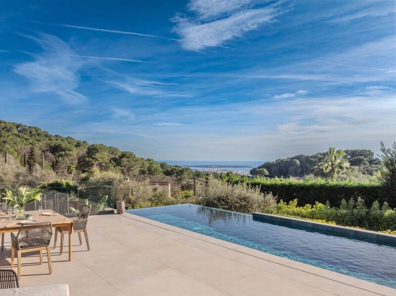 In the heart of one of Mougins' most residential areas, close to the Parcs de Mougins and the Etang de Font Merle, this exceptional property enjoys a remarkable location. Just three minutes from the prestigious Cannes-Mougins golf course and the Mougins British School, it enjoys breathtaking views of the sea, the Lerins islands and the surrounding countryside. Cannes and the Croisette are within easy reach. The villa comprises a spacious living-dining room extended by an open kitchen, four elegant bedrooms including a ground-level master suite with dressing room and refined bathroom, and an independent apartment. For the well-being and leisure of the owners and their guests, a gym with Jacuzzi, a cinema room and a convivial family room enhance this exceptional place to live. The property is enhanced by a carefully landscaped garden, sublimated by a sleek infinity pool. A vast double garage provides direct access to the property.