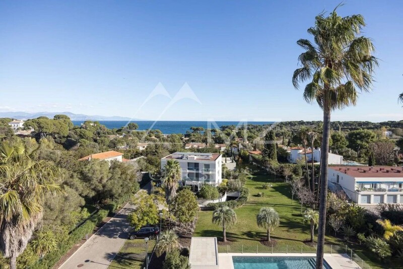 Ideally located at the highest point of Cap d'Antibes, benefiting from a double sea view, which allows you to enjoy gorgeous sunsets and sunrises. This unique rooftop terrace penthouse boasts stunning views overlooking Nice to the East and Cannes to the West, as well as snow covered mountains to the North. The area benefits from ten degrees cooler than the surface temperature, because of height, and air currents. The accommodation of approximately 170 sqm of built area, features an entrance hall, a reception room with dining area, opening onto a terrace, a well-equipped kitchen, two bedrooms with en suite shower rooms and sea views, a further bedroom, and a separate shower room. A huge terrace over 350 sqm features three seating areas and a large dining table seating for 12, Jacuzzi and sun beds. All rooms offer panoramic sea views. Two basement garages and ground ones, a spacious garden with 20 x 10 m communal swimming pool complete this stunning property. Estimated annual energy charges (2015) : 908€.