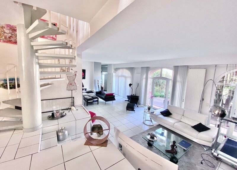 In a complex of 3 apartments, near Perpignan town centre, superb 180 m² apartment on 3 levels with double exterior. The apartment was designed as an independent house, and is composed of an entrance with separate toilets, a beautiful living room of approximately 41 m² with a functional fireplace, a kitchen area with storeroom. A lovely spiral staircase leads to the second level with a spacious and very bright office, as well as a 40 m² master bedroom with dressing room and bathroom and toilets. The top level consists of the night quarters with 3 bedrooms, a shower room and a terrace. There is a private outdoor area with trees on the ground floor accessible from the living room and a private parking space.