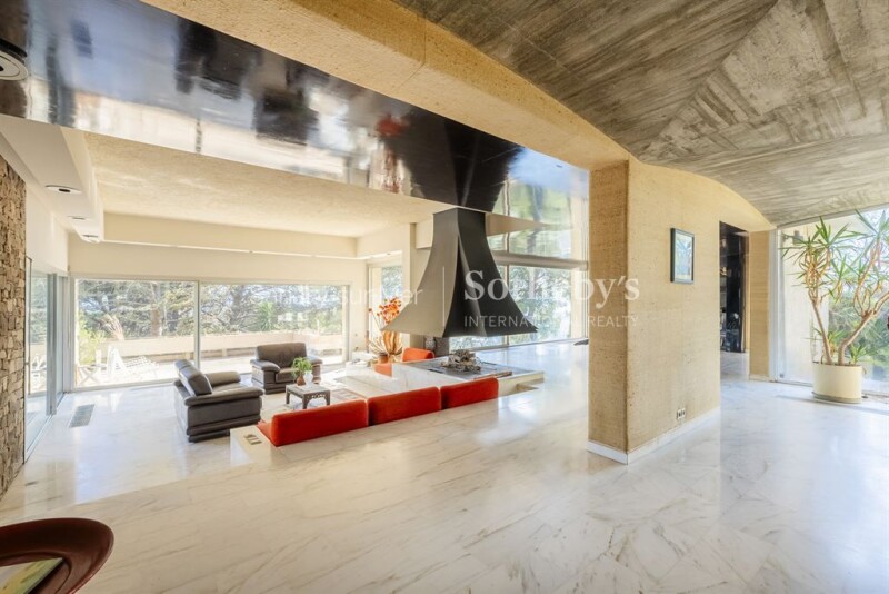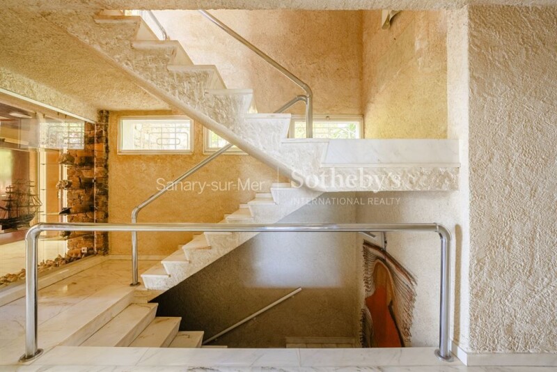 For sale in Carqueiranne, a modernist villa from the 70s designed by a renowned architect, offering exceptional sea views. Situated on an elevated position on a plot of over 3 900 sqm in a sought-after residential area, this property is a true architectural gem. With approximately 400 sqm of living space, the villa includes a vast living room of over 100 sqm with breathtaking views of the Mediterranean, a sumptuous master suite, 4 bedrooms, 2 shower rooms, and 2 bathrooms. The lower level houses a large garage, an independent studio, a games or sports room, and several storage areas. This exceptional villa will appeal to those who appreciate generous spaces and originality. Its prime location and quality features make it a rare opportunity in the Carqueiranne real estate market.