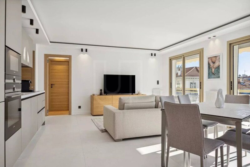 Beautiful apartment ideally located in a secure residence in the centre of Cannes, behind the Grand Hotel, walking distance from the Croisette, Antibes street and the food market. The 64 sq.m apartment is south and west facing and has been completely renovated to a superb standard. It comprises an entrance hall with cupboards, large living room with equipped kitchen, 2 bedrooms, 2 bathrooms and terrace. Additionally there is a cellar and a parking space in the basement. Other features include a lift, air conditioning, electric shutters, intercom and a caretaker. Sold furnished.