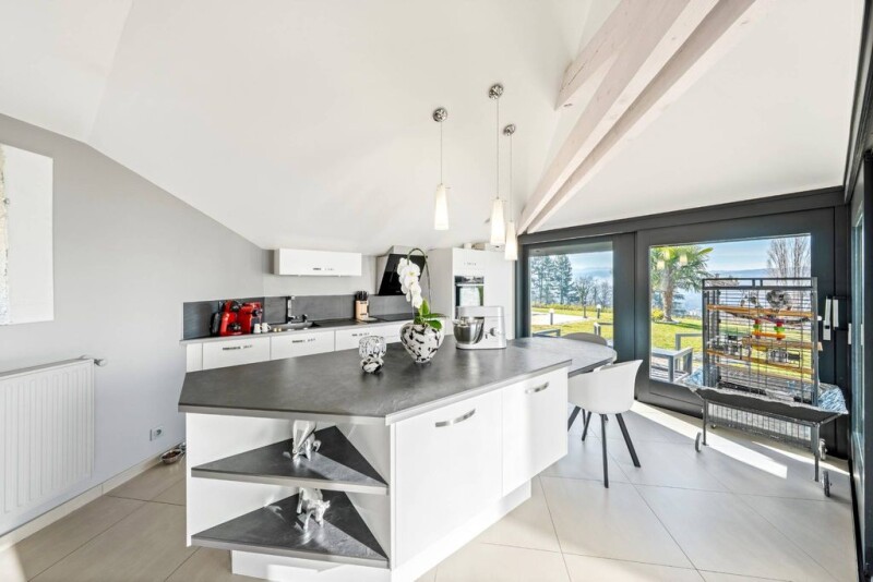 LAC LÉMAN SOTHEBY'S INTERNATIONAL REALTY presents: Stunning Contemporary Home with Exceptional Panoramic Views Located on a spacious 1,143 m² plot in a quiet and highly sought-after neighborhood, this 200 m² architect-designed villa offers breathtaking views of Mont Blanc and a beautifully landscaped garden. Enjoy a heated swimming pool, perfect for relaxing on sunny days. Upon entering, you are immediately welcomed into a spacious and luminous setting. The main living area features a cathedral-style living room with exposed beams and a beautiful fireplace, a warm and inviting dining area, and a fully equipped kitchen. Thanks to large bay windows opening onto a lovely terrace, these spaces are bathed in exceptional natural light. On the ground floor, you will also find a comfortable bedroom with a private shower room and dressing area. Upstairs, the night area includes three bedrooms, including a master suite, as well as a bathroom, separate toilets, and a charming mezzanine—ideal for a reading or relaxation space. Additionally, this villa offers a technical room, a storage shed for garden equipment, a wine cellar, a workshop, two covered carports, and multiple private outdoor parking spaces. This home embodies excellence in design and comfort, combining high-quality materials with meticulous architecture. Don’t miss the opportunity to discover this exceptional property! LAC LÉMAN SOTHEBY'S INTERNATIONAL REALTY, YOUR EXPERT IN LUXURY PROPERTY SALES ON THE SHORES OF LAKE GENEVA AND ITS SURROUNDINGS.