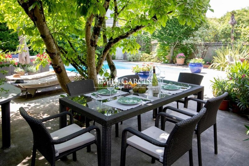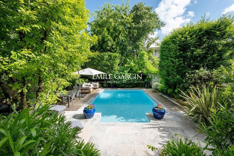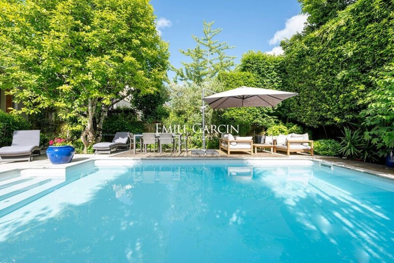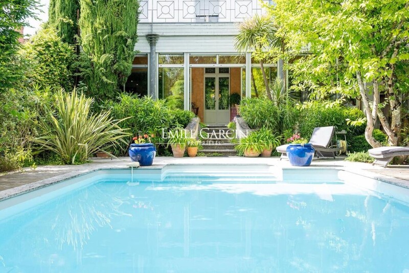 Sole agency. Idyllically located in the Saint Seurin district, near a number of renowned schools and shops, this magnificent house of approximately 350 sq.m stands out for the quality of its finish and its sublime period character. Behind a beautiful stone facade, you will find an elegant entrance and a majestic hall with original tiling. The living rooms are hidden behind doors decorated with stained glass windows, setting the tone for an elegant and warm interior. The natural light draws you towards the vast double reception room and its unspoiled period features. On the ground floor, you will also find a large office, a small cosy living room, a spacious bespoke kitchen and a perfectly furnished veranda, backing onto a beautiful landscaped garden and swimming pool (not overlooked). On the first floor, there are five comfortable bedrooms, three of which back onto a large terrace overlooking the garden. They are variously equipped with dressing rooms and private shower rooms or bathrooms. A cellar of 50 sq.m has been insulated and furnished to serve as an evening venue / tasting cellar, as well as housing a utility room and technical room. A covered side passage accessible from the street provides storage for bicycles. An exceptional property in one of the most sought-after areas of Bordeaux.
