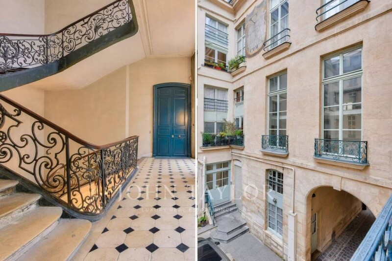 Exclusivity. Paris 1st - Palais Royal / Place des Victoires Just steps from Place des Victoires and the Pinault Foundation, on the noble floor of a 17th-century mansion with a listed staircase, a through apartment filled with natural light and boasting impressive volumes, with a surface area of 233.03 m² (Carrez law). It comprises: - An entrance hall, - A large 65 m² reception room with four-meter-high ceilings, - An open-plan kitchen, - A spacious office, - Three bedrooms, - Three bathrooms, - Mezzanines. Additional features: Two cellars in the basement. This unique apartment, located in a historic mansion that once hosted Jean-Jacques Rousseau, offers a total surface area of 258.16 m². Its large windows, open fireplace, and mezzanines give it a distinct charm, combining the elegance of period features with a contemporary touch.