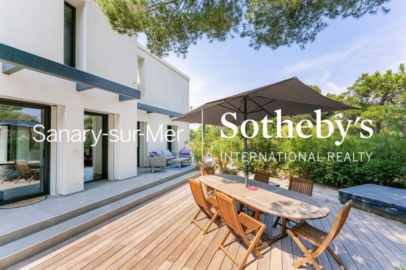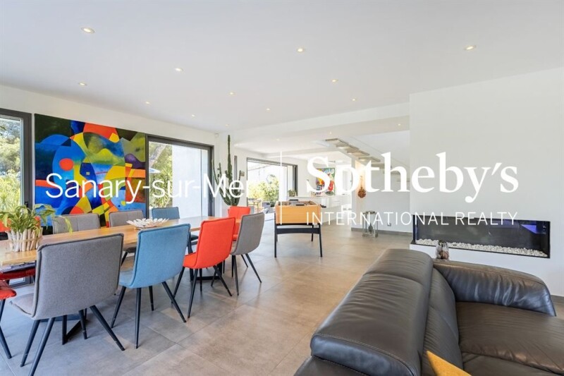 For sale in Sanary-sur-Mer, in the highly sought-after neighborhood of Portissol, a superb recently renovated 188 sqm house with sea view. This bright property offers an unobstructed view of the sea and the pine forest. You will be charmed by its spacious reception area. The house includes 4 suites, one of which is on the ground floor, each with its own bathroom. A basement, a spa, a pool, and several vegetated relaxation areas complete this exceptional property. Enjoy 3 indoor parking spaces as well. Portissol beach is a 15-minute walk away, and the coves are just a stone's throw away.