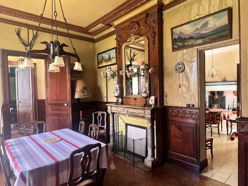In the heart of Mont de Marsan, tucked away behind mature parkland and tall gates, this turn-of-the-last-century property has retained all its attractive architectural appeal despite the passing of time. In the heart of a built-up urban area (restaurants, appartment blocks and other suburban properties) the house sits in tranquility behind a leafy canopy of mature trees, far back from the road, forgotten by time. The original front door opens onto the interior of what was once an elegant house. The floors are laid with attractive 19th century floor tiles. The walls are lined with wooden panels. The ceilings decorative with intricate panels and plasterwork. The double staircase with its split-level landing and the high ceilings throughout are a fantastic opportunity for a restoration project for buyers whose love of authentic period detail inspires them to undergo a complete renovation project. There is much to conserve, but it should be noted that the property will need complete modernization. The bathrooms and kitchen although in working use are dated. Some of the wooden panels need replacing and some of the lovely old original Versailles floorboards repairing in one or two spots, but it is possible to create a fabulous central town house and to recuperate many of the original features. The ground floor house The main entrance hall leads to a study area overlooking the front garden on one side and a spacious dining room on the other side. The dining-room has a remarkably ornate ceiling indicative that this property was the home of a wealthy person in the early 1900s. At the far end of the hallway there is a fantastic double-sized reception room with a marble fireplace and where an internal wall has been removed an open-plan to open up a space that was once the original kitchen. There is a downstairs WC in this section of the property. The last owners to live in the property created a compact kitchen in a room to the rear of the original kitchen that opens out nicely to the garden area, where there is a vast amount of useful space in the outbuildings (storage, outdoor kitchen, garage, barn, studio). Both the original kitchen and the « new » kitchen require modernisation. The First Floor The first floor landing, half way up, has a glorious decorative window worthy of a church or cathedral which is a lovely feature one would want to keep. The first double bedroom at the top of the half-landing has a shower room and a second adjacent room (which could be used as a dressing-room or a baby's room). The top of the stairs open out to a spacious main landing. Once again the ceilings here are adorned with decorative plasterwork. On this level there are three good-sized double bedrooms, an old-fashioned bathroom with an original enamel bathtub, an area with a separate vintage toilet and wash-basin set on a lovely cabinet. Many bathrooms today are reworked today with claw-footed bath-tubs, and sinks set into impressive cabinets. In this house all the features are original and the tiles in the toilet are rather beautiful for their age. Some fun details could be kept here, whilst clearly needing to add an element of 21st comfort and modernity to the home. On the top floor there is an area in a poor state of repair where the servants used to live. The « chambres de bonnes ». This useful surface area could be developed with relevant planning permissions. What would I do if the property were mine? The electrics, plumbing, kitchen and bathrooms will need attention. The property needs painting throughout and a carpenter to repair some area where the wooden floor or panels are rotten or show signs of insect infestation. To whom will this property appeal? This property will appeal to buyers seeking a spacious home with many useful outbuildings in the heart of town. The space the property offers in an urban setting is remarkable. It will only appeal to a buyer who enjoys overseeing a project and the idea of a seeing a beautiful period home brought to life in the 21st century. Once has the sense of being in a period property with farm buildings, however for buyers seeking a rural backdrop it should be noted that beyond the canopy of foliage provided by the mature trees this is an urban environnement in an area with a lot of other buildings. The road is quiet for town, but there are cars, other buildings all around. A video of the inside of the property is available for clients registered with Bliss Immobilier.