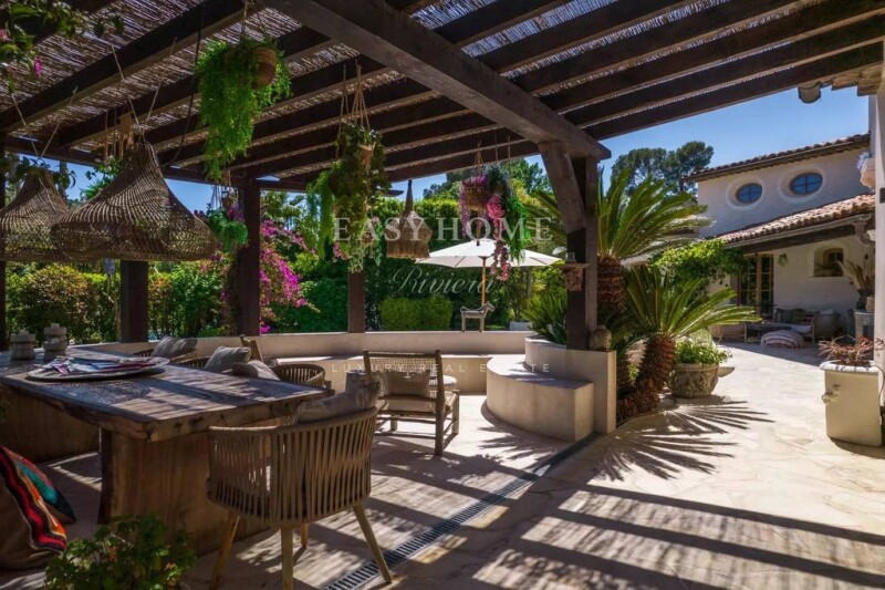 EXCLUSIVE Purchase/Sale Superb quality villa recently renovated, in Mougins, at the foot of the golf course, largely on one level, close to international schools. the villa has a double living room with fireplace, an independent equipped kitchen and a dining room, all with access to the large terraces. Still on the ground floor, 3 en-suite bedrooms and a spacious office. Upstairs, very beautiful master bedroom and bathroom, dressing room, boudoir. A games room, cinema, with shower, toilet, an air-conditioned wine cellar and laundry room. The entire villa has been renovated with taste and quality, the property has underfloor heating, as well as air conditioning. The land of approximately 1600 m² with beautiful terraces and swimming pool, barbecue area and garden shed. Carport for 2 vehicles. Les informations sur les risques auxquels ce bien est exposé sont disponibles sur le site Géorisques : georisques.gouv.fr État des risques et pollution: réalisé (2024-07-10).
