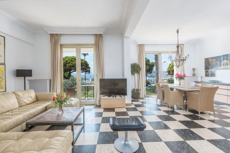 Experience a truly unique atmosphere with panoramic views of the serene waters and picturesque boats of the small harbor in Cannes. Enjoy these magnificent sights from your delightful private terrace, perfect for relaxation and entertainment. View over the bay of Cannes and sunset over the Esterel mountains. View to the Lerins Island from the breakfast terrace. This beautiful and charming apartment boasts high ceilings and has been meticulously renovated, honoring its original architectural elegance. The spacious layout includes: Welcoming, open entrance hall that seamlessly leads you through the apartment. Generous living room with direct access to the main terrace, offering stunning harbor views that create a serene and inviting ambiance. - Elegant, classic kitchen equipped with modern amenities and access to a lovely morning terrace, ideal for enjoying your breakfast in the sunshine. - Two comfortable bedrooms, one of which features its own private terrace, providing ample space and privacy. - 2 well-appointed bathrooms one with a shower and one with bathtub, offering both style and convenience. - Additional guest toilet for added comfort and functionality. A newly renovated luxury hotel is opening soon and will be a great asset. Located in the heart of Cannes, this exceptional apartment combines timeless charm with modern luxury, providing an unparalleled living experience close to all the amenities and attractions this prestigious area has to offer.