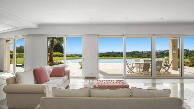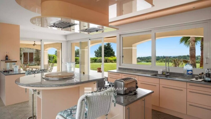 Ideally located in the heart of an exceptional estate in Biot, this 650 m2 property benefits from a quiet location and a south-facing exposure, offering a panoramic view of the sea and the surrounding hills. The main house offers a large, bright living room on the ground floor, giving access to the swimming pool and the garden with a view of the sea. On this same level, there is a fitted kitchen, 4 bedrooms and an office. The first floor is reserved for a master suite of more than 100 m2, including a sleeping area, a living room, a shower room, a dressing room for Mr., a bathroom, a dressing room for Mrs., as well as a terrace overlooking the swimming pool and the sea. The basement remains to be fitted out according to your needs, whether for a cinema room, a fitness area, a golf simulator or any other use. A covered terrace with barbecue allows you to enjoy outdoor meals all year round, with a view of the Mediterranean. An annex of approximately 60 m2 located to the side, currently used as an outdoor lounge, could be converted into a separate bedroom or guest apartment. A garage that can accommodate up to 5 cars completes this prestigious property. Energy class : C - Climat class : D/ DPE old version. Information on the risk to which this property is exposed is available on the Geohazards website : www.georisques.gouv.fr.