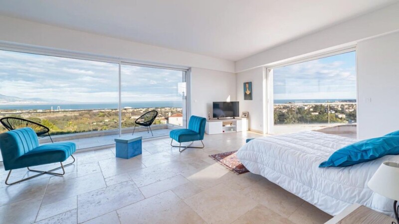 Exceptional sea views from Nice to Cap d'Antibes for this beautiful new villa (built in 2021), in a quiet and residential environment, Accommodation comprising, on the first floor, an entrance hall with guest toilet, a double reception room, a dining room, a vast separate fitted kitchen opening onto a partially covered terrace, a spacious ground-level bedroom with shower room, toilet and dressing room. Upstairs are two bedrooms with en suite shower rooms and toilets, a master bedroom with dressing room and open shower room, separate toilet, dressing room and private terrace. Very large basement with play room/billiard room (home cinema possible), the first of 2 pools an indoor swimming pool (chlorine) and fitness area, laundry room and technical rooms. A shower room, separate toilet, spare bedroom or office with staircase to ground-floor bedroom complete this level. Beautiful flat landscaped grounds adorned with a large swimming pool that can be heated. Plenty of parking (possibility of carport); technical room and tool storage. Double-glazing, underfloor heating, reversible air-conditioning, alarm, central vacuum system, automatic watering, outdoor lighting. The property is under a ten-year company guarantee. Contact us today to find out more.