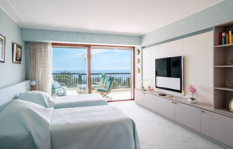 Located in the heart of a prestigious residence on the Croix des Gardes hill, this magnificent two-room apartment of 90 sqm offers an exceptional living environment. It consists of a separate kitchen, a large double living room, as well as an en-suite bedroom, all opening onto a spacious 23 sqm terrace with a breathtaking view of the sea, extending from the Bay of Cannes to the foothills of the Esterel and the Levant Islands. In addition, two studios of 20 sqm each accompany this apartment, one located on the third floor and the other on the ground floor. A large 20 m² garage completes this property. Perfect for welcoming family and friends in complete independence, this property is nestled in a residence with a swimming pool, tennis courts, and surrounded by a listed park home to century-old Mediterranean species. Ideally located in a quiet area, just 3 km from the centre of Cannes and 1 km from the beaches, this rare apartment is offered by Côte d'Azur Sotheby’s Cannes.