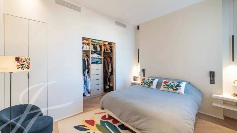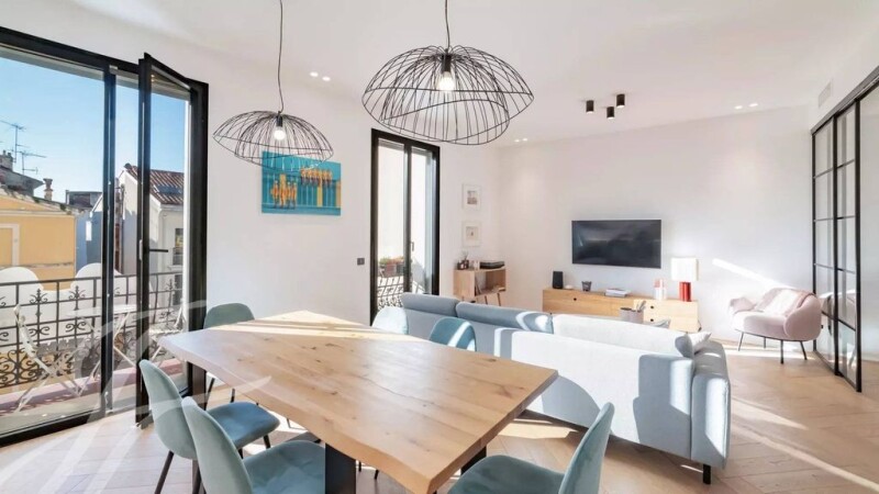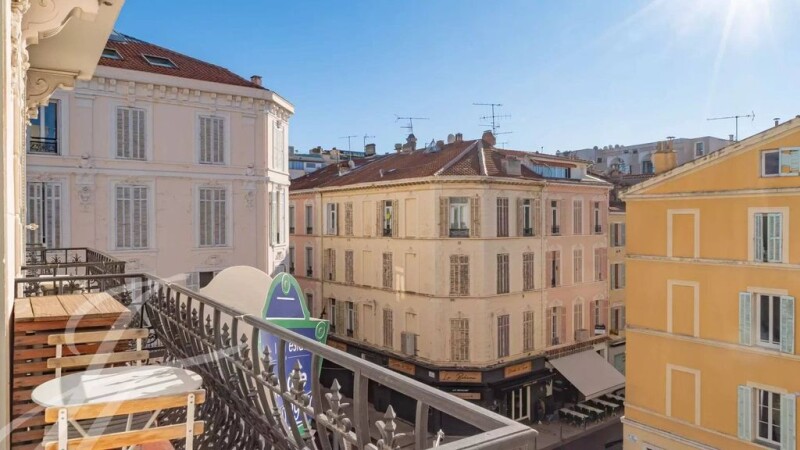 Between the Rue d'Antibes and the Croisette, superb recently renovated apartment in a beautiful bourgeois building with elevator. Located on the 3rd floor, with a "loi Carrez" surface area of 80 sq.m plus two balconies, it is composed as follows : entrance hall, living room/kitchen, master bedroom with dressing room and bathroom + shower and WC, alcove bedroom, shower room with WC, laundry room. The south-facing living room is bright and sunny, with a small table and two chairs on one of the balconies overlooking the garden in the foreground. The apartment has been recently renovated to a very high standard and is fully air-conditioned. Its location is ideal for both residential and holiday rental purposes.