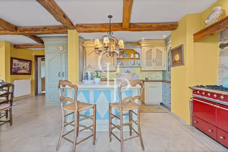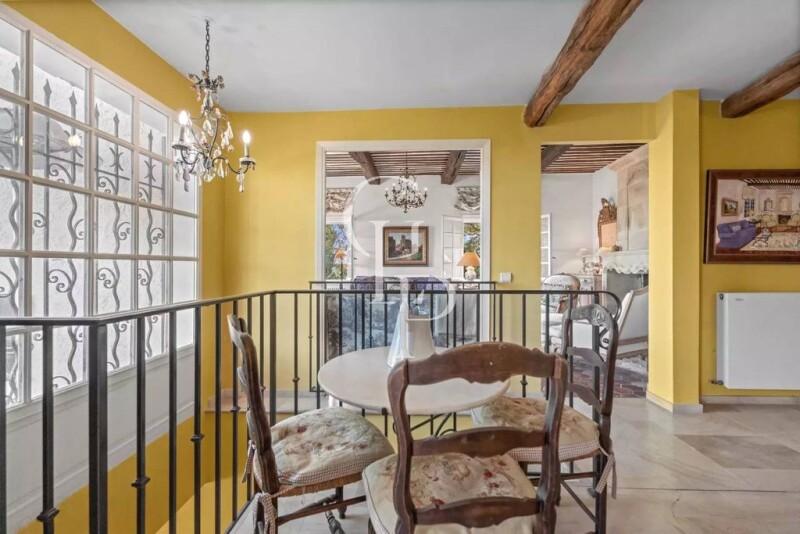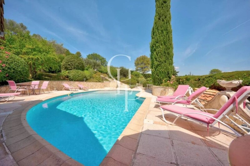 In a closed domain within walking distance from the beautiful village of Valbonne, charming villa enjoying a breathtaking view of the surrounding hills. Entrance to the property is via a beautiful driveway with Mediterranean plants and trees. The house offers a large living room with high ceilings and an impressive fireplace, a dining room and a large fitted kitchen opening directly onto a terrace and the spectacular view. Information on the risks to which this property is exposed is available on the Georisks website: georisques. gouv. fr 2 large en-suite bedrooms with dressing room complete this floor. On the garden level, a second reception room opens up to two large bedrooms with private bathrooms. In the garden, a stone mazet serves as a wine cellar and benefits from a shaded terrace. An 11x6m heated swimming pool, a pool house equipped with kitchen and outdoor shower, a double carport and numerous parking spaces complete the property.