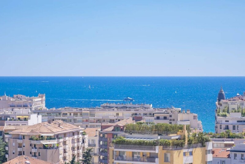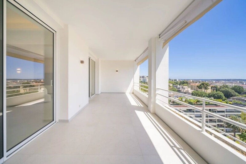 Cannes Montfleury: In a secure, historic residence just 5 minutes' walk from the Croisette, with a caretaker and beautiful landscaped park. This 160 m2 3 bedroom apartment with a large terrace and panoramic sea view. Completely renovated to a high standard, it comprises an entrance hall, a large double living room opening onto the south-facing 30 m2 terrace, a fully-equipped open-plan kitchen, a laundry room, a master bedroom with bathroom and walk-in shower and a magnificent private terrace, 2 en suite bedrooms, each with its own shower room, and a large office. A garage and two cellars complete this property.