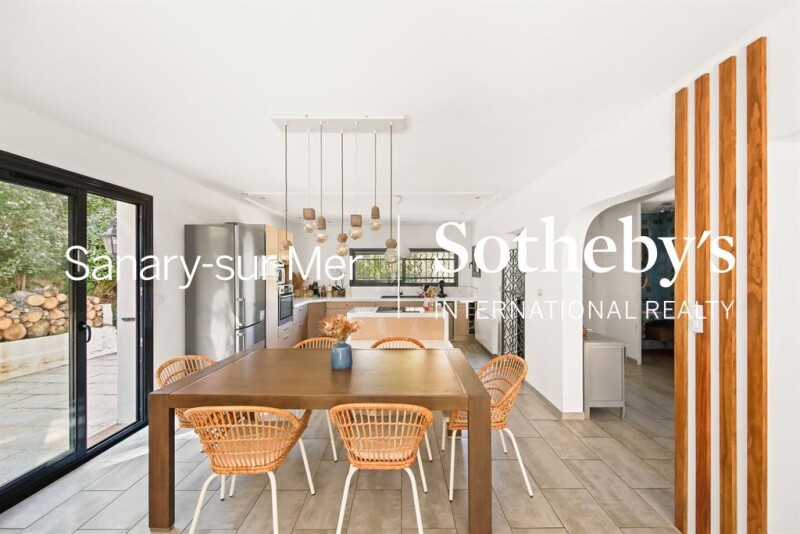 Family villa for sale in the sought-after Petit Bois neighborhood of Toulon. Fully renovated, this 150 sqm home is a true haven of peace, offering a spacious living area with an open-plan kitchen, a living/dining room, and a library or playroom space, enhanced by a cozy fireplace. Upstairs, you will find three bedrooms and a shower room, while the converted attic offers various possibilities: a master suite, office, or playroom, depending on your needs. Outside, enjoy a beautifully landscaped 827 sqm garden with a swimming pool and a children’s play area. A large garage, equipped with an electric car charging point, completes the many assets of this home. Nestled in a peaceful setting, just steps away from the beaches, this villa perfectly combines modern comfort and an idyllic environment.