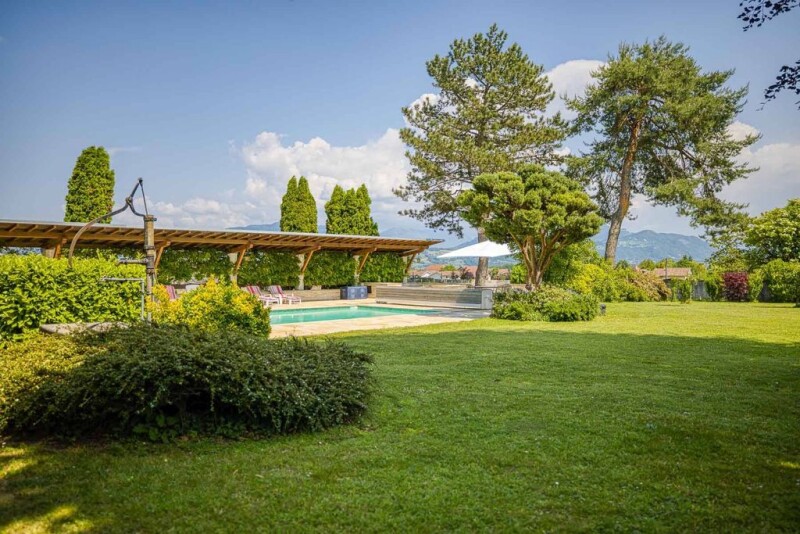 ANNECY SOTHEBY'S INTERNATIONAL REALTY offers you exclusively this prestigious property in Reignier Esery, made up of two individual houses on an enclosed and wooded plot of 3100 m² (building land which offers great development possibilities, for example by the construction of a additional house or detachment of part of the plot). The location is ideal, quiet, less than 10 km from Switzerland, close to the CEVA-Léman Express station which connects Geneva, La Roche-sur-Foron and Annecy; all amenities are nearby (nursery, primary and secondary schools, supermarkets, bakeries, pharmacies, hairdressers, Saturday morning market, etc.). For enthusiasts, the Esery golf course is less than 10 minutes away by car and the ski slopes are easy to access (Megève is less than an hour away). This 20th century property has been renovated with quality materials. It is made up of a mansion of approximately 420 m2 with a large swimming pool (heated by heat pump) and its summer kitchen as well as an independent caretaker's house of approximately 87 m² which is currently rented and provides monthly income. A large courtyard separates the two accommodations, which preserves everyone’s privacy. Spread over 4 levels, this mansion includes an entrance hall with a large cloakroom, a guest toilet, a beautiful completely renovated and equipped kitchen, a dining room, a large living room with a fireplace and a splendid 70m2 heated veranda with a magnificent view of the garden and the swimming pool. Upstairs there is a large office-library, a master suite (with its bathroom, a walk-in shower, a separate toilet and a large dressing room) all opening onto a large terrace. On the top level, there are 4 bedrooms, a bathroom and a separate toilet. The garden level has a games room, a convertible bathroom, a beautiful wine cellar, a laundry room, a technical room and storage space. This space could be converted into an independent studio (separate entrance). The property offers two enclosed parking spaces, as well as a carport with 4 spaces. Close to the countryside and nature, offering a magnificent view of the Alps mountains, benefiting from a sunny orientation and close to all amenities, the standing of this property will appeal to demanding buyers. ANNECY SOTHEBY'S INTERNATIONAL REALTY, your expert in the sale of luxury real estate in the Annécien and Aravis areas. The location is ideal, quiet, less than 10 km from Switzerland, close to the CEVA-Léman Express station which connects Geneva, La Roche-sur-Foron and Annecy; all amenities are nearby (nursery, primary and secondary schools, supermarkets, bakeries, pharmacies, hairdressers, Saturday morning market, etc.). For enthusiasts, the Esery golf course is less than 10 minutes away by car and the ski slopes are easy to access (Megève is less than an hour away). This 20th century property has been renovated with quality materials. It is made up of a mansion of approximately 420 m2 with a large swimming pool (heated by heat pump) and its summer kitchen as well as an independent caretaker's house of approximately 87 m² which is currently rented and provides monthly income. A large courtyard separates the two accommodations, which preserves everyone’s privacy. Spread over 4 levels, this mansion includes an entrance hall with a large cloakroom, a guest toilet, a beautiful completely renovated and equipped kitchen, a dining room, a large living room with a fireplace and a splendid 70m2 heated veranda with a magnificent view of the garden and the swimming pool. Upstairs there is a large office-library, a master suite (with its bathroom, a walk-in shower, a separate toilet and a large dressing room) all opening onto a large terrace. On the top level, there are 4 bedrooms, a bathroom and a separate toilet. The garden level has a games room, a convertible bathroom, a beautiful wine cellar, a laundry room, a technical room and storage space. This space could be converted into an independent studio (separate entrance). The property offers two enclosed parking spaces, as well as a carport with 4 spaces. Close to the countryside and nature, offering a magnificent view of the Alps mountains, benefiting from a sunny orientation and close to all amenities, the standing of this property will appeal to demanding buyers. ANNECY SOTHEBY'S INTERNATIONAL REALTY, your expert in the sale and rental of luxury properties in the Annécien and Aravis areas.