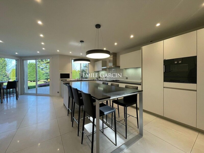 Located one hour from Paris, in Eure-et-Loir and on the banks of the Eure, this contemporary house for sale is located in a pretty, preserved village. Built in 2002 and in perfect condition, it consists on the ground floor of a beautiful reception, a large kitchen, a bedroom with bathroom and an office. On the first floor, there are three bedrooms, each with its own bathroom. The basement is fully furnished, there is a large garage, a cinema room, a laundry room and a small apartment with living room/kitchen, bedroom and shower room. The garden of more than 3,000 sqm is perfectly maintained.