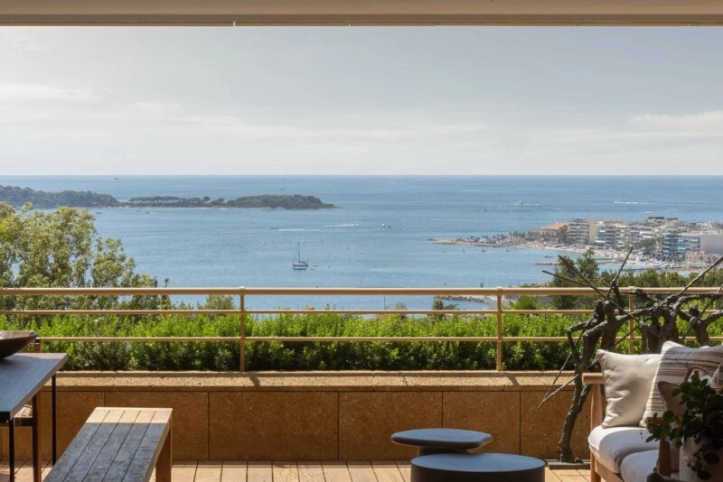 Located in the highly sought-after district of California in Cannes, in the heart of an exclusive, high-end residence with a guard and a park and swimming pool, we offer this exceptional apartment of 215.50 m2 with a beautiful 60 m² terrace offering a panoramic view of the Mediterranean and the Lérins Islands. Completely renovated by a renowned local architect with high-quality noble materials, it offers a resolutely contemporary style, in a spirit of great luxury. Bright, not overlooked and sheltered from view, it has a large entrance, a very large living-dining room area extending onto a terrace, an ultra-modern fitted kitchen closed by a glass roof, a TV lounge area, a master bedroom en suite with dressing room and bathroom, with private access to the terrace and sea view, two en suite bedrooms with shower room and private balconies, a laundry room for a functional space. An independent studio, two cellars and a parking space complete its many assets.