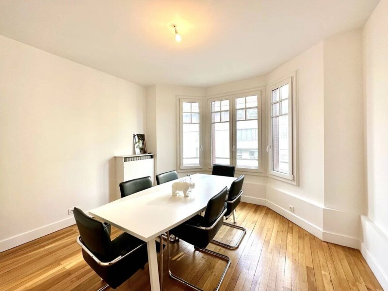 This apartment on the 4th floor of 106.75 m2 with 3 bedrooms and 1 shower room has currently been completely renovated in office configuration. It is possible to install the kitchen in the living room and transform the small kitchen into an additional bathroom so that it becomes an exceptional apartment. 2 balconies (10 m2 and 2.30 m2) and a cellar complete this property. Possibility of buying a garage for 50,000 euros across the street of this apartment. Contact us today to discover more.