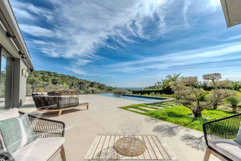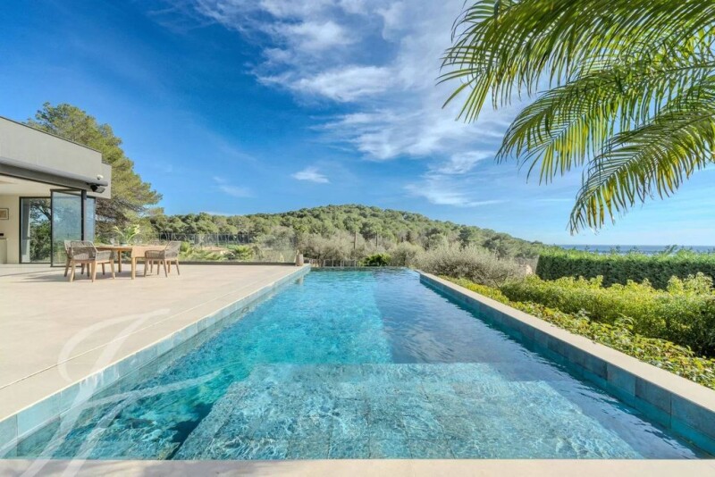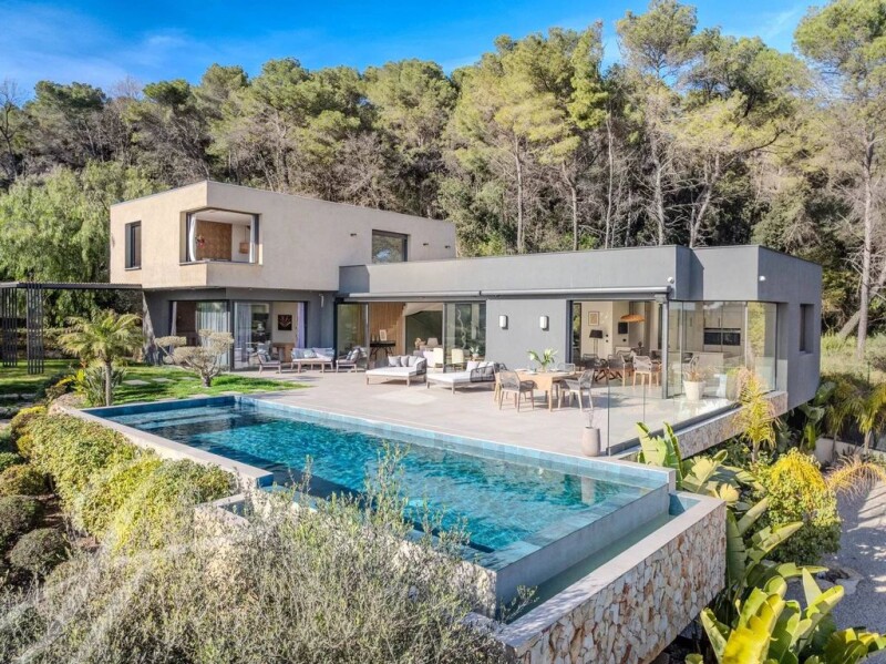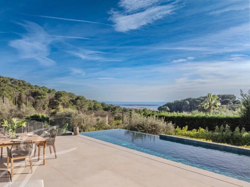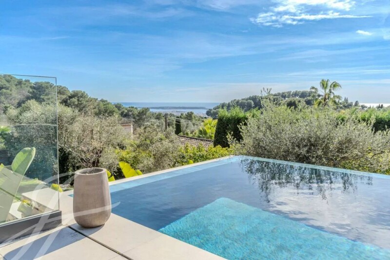 In the heart of one of Mougins' most residential areas, close to the Parcs de Mougins and the Etang de Font Merle, this exceptional property enjoys a remarkable location. Just three minutes from the prestigious Cannes-Mougins golf course and the Mougins British School, it enjoys breathtaking views of the sea, the Lérins islands and the surrounding countryside. Cannes and the Croisette are within easy reach. The villa comprises a spacious living-dining room extended by an open kitchen, four elegant bedrooms including a ground-level master suite with dressing room and refined bathroom, and an independent apartment. For the well-being and leisure of the owners and their guests, a gym with Jacuzzi, a cinema room and a convivial family room enhance this exceptional place to live. The property is enhanced by a carefully landscaped garden, sublimated by a sleek infinity pool. A vast double garage provides direct access to the property.