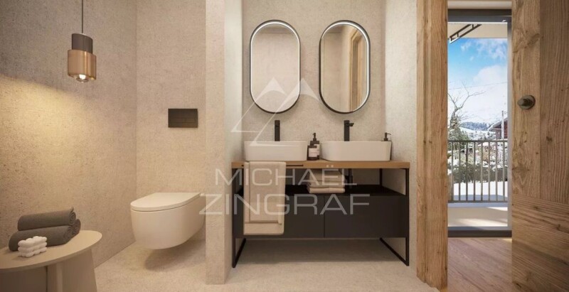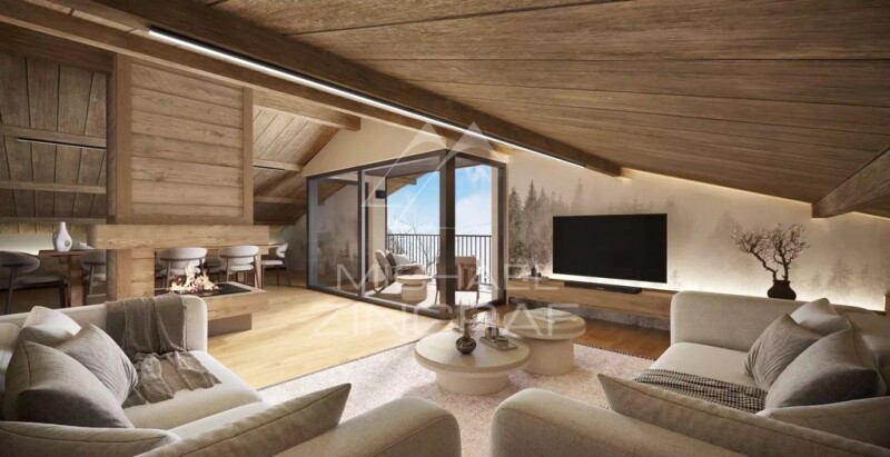 Michaël Zingraf Real Estate Megève offers you this sumptuous 143 m2 family duplex flat (total surface area 170 m2) renovated with quality materials, in a spirit of authenticity and comfort. Located in a quiet area with panoramic views, yet within walking distance of Megève, this apartment combines wood and design to great effect, offering a spacious living room with open-plan fitted kitchen opening onto a terrace. The sleeping quarters offer four en suite bedrooms, each with a private bathroom or shower room for family and friends. Delivery is scheduled for summer 2026, subject to planning and administrative approvals.