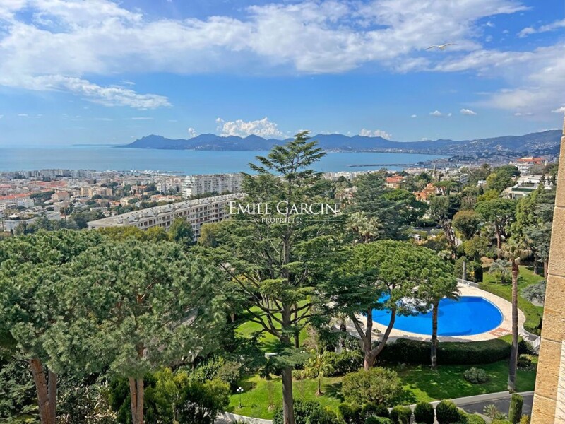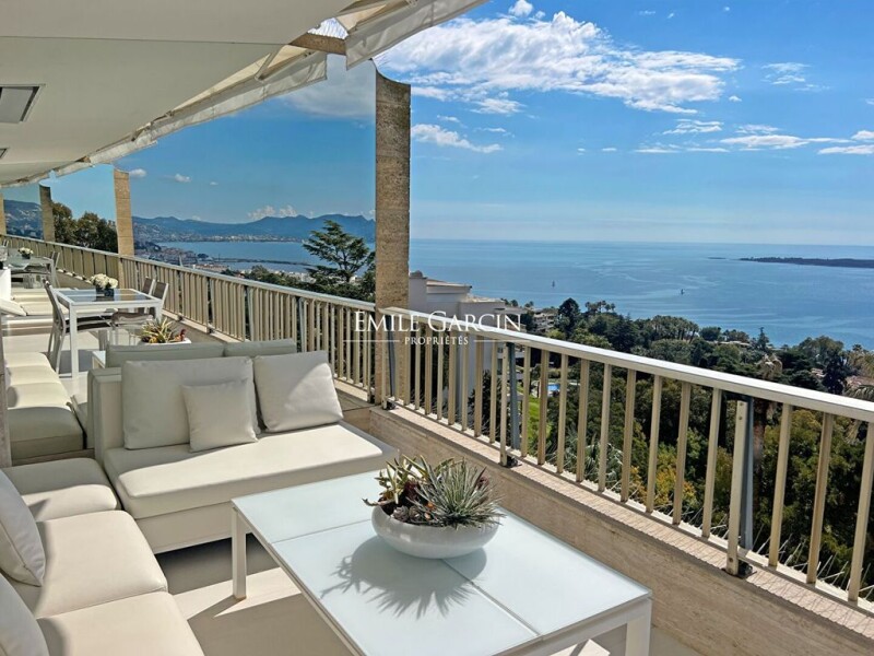 Peacefully located on the top floor of a prestigious and secure residence on the Californie hill in Cannes, this bright and fully-renovated apartment boasts an exceptional sea view. It presents ??approximately 117 sq.m of living area, consisting of two ensuite bedrooms with dressing rooms, a beautiful and fully-equipped open kitchen, and a spacious living room backing onto a stunning terrace of approximately 20 sq.m. Spectacular sea views taking in the Bay of Cannes and the Lérins Islands. Magnificent leafy grounds with a swimming pool and caretaker. This exceptional property is sold with a garage, a private outdoor parking space and a cellar. Condominiums of 465 units (No proceedings in progress). Annual expenses : 7826 euros.