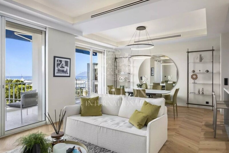 Port Canto, in a luxury art-deco residence, this superb 4-room flat on a high floor of around 100m2 has been completely refurbished to a very high standard and offers superb panoramic views over the greenery and the sea. With its chic, refined character, parquet flooring, high ceilings and discreetly illuminated cornices, this fully air-conditioned flat comprises an entrance hall, a comfortable living room with a modern, fully-equipped open-plan kitchen and a terrace with sea views. There are three en suite bedrooms, each with its own shower room, a cellar and a garage. Ref:14435 DPE: (C)163/(A)5 Number of units in the condominium: 90 No current legal procedure affecting the residence. Average energy expenses in 2021: between 1266€ and 1714€ per year Agency fees are the responsibility of the seller Information about the risks to which this property is exposed is available on the website:.