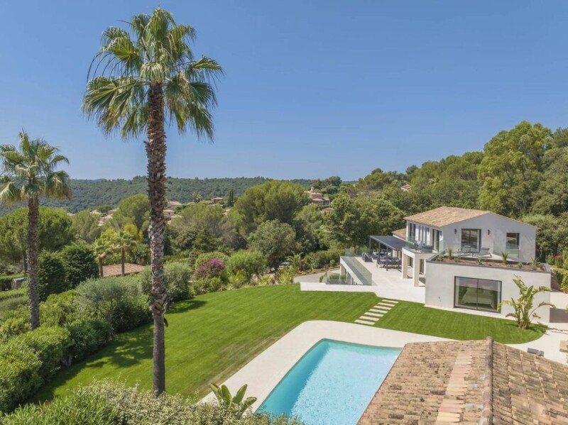 Nestled in the most prestigious neighborhood of Biot, in the heart of a verdant setting, this fully renovated property offers magnificent views till the sea and absolute tranquility. With generous volumes, high-end features, and refined decoration, this residence, spread over three levels, offers approximately 365 m² of living space. It includes a vast reception area opening onto a south-facing terrace leading to the pool, five en-suite bedrooms, including a spacious master bedroom overlooking the garden, an equipped kitchen, a laundry room, and a gym. A large garage complete this property. The superb 4,130 m² landscaped garden features a beautiful pool, a pétanque court, and ample parking spaces. Close to the village of Biot, schools, and only 25 minutes from the airport.