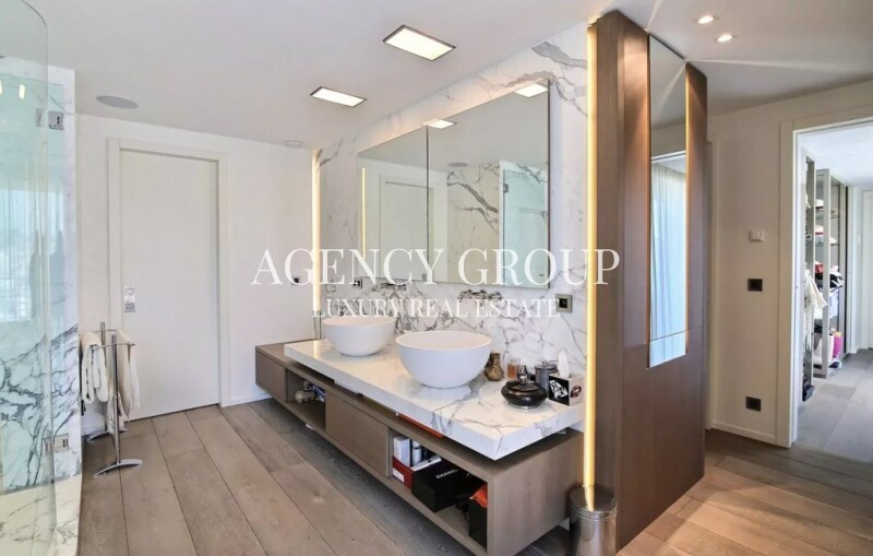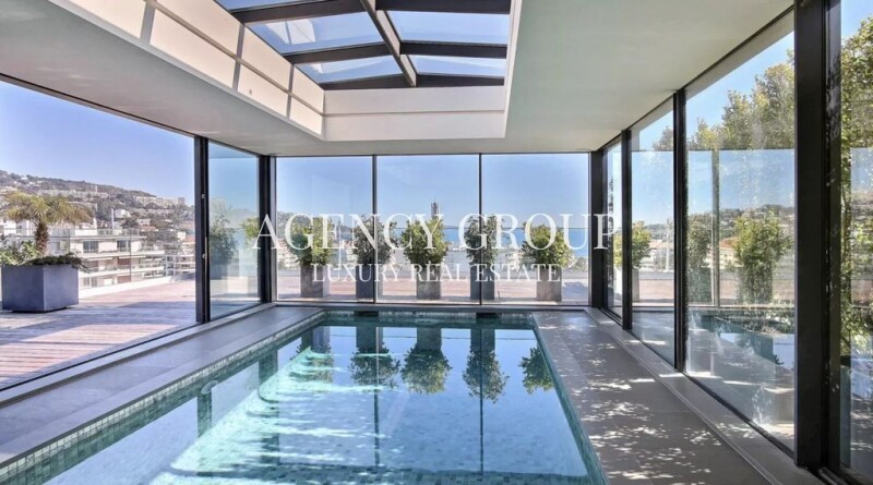 Located in one of the most prestigious residences on the Croisette, offering a superb panoramic view of the Bay of Cannes, we are delighted to present this magnificent contemporary Duplex with 570 m² of living space and its 410m² of terraces, enjoying a breathtaking view. breathtaking and high-end services. The apartment is composed as follows: On the ground floor: A living room, dining room, independent kitchen, 5 en-suite bedrooms, a games room. On the upper floor: a large living / dining room, a heated indoor swimming pool, a spa, a hammam, a bar. 3 garages, 3 service rooms and a cellar complete this exceptional property.