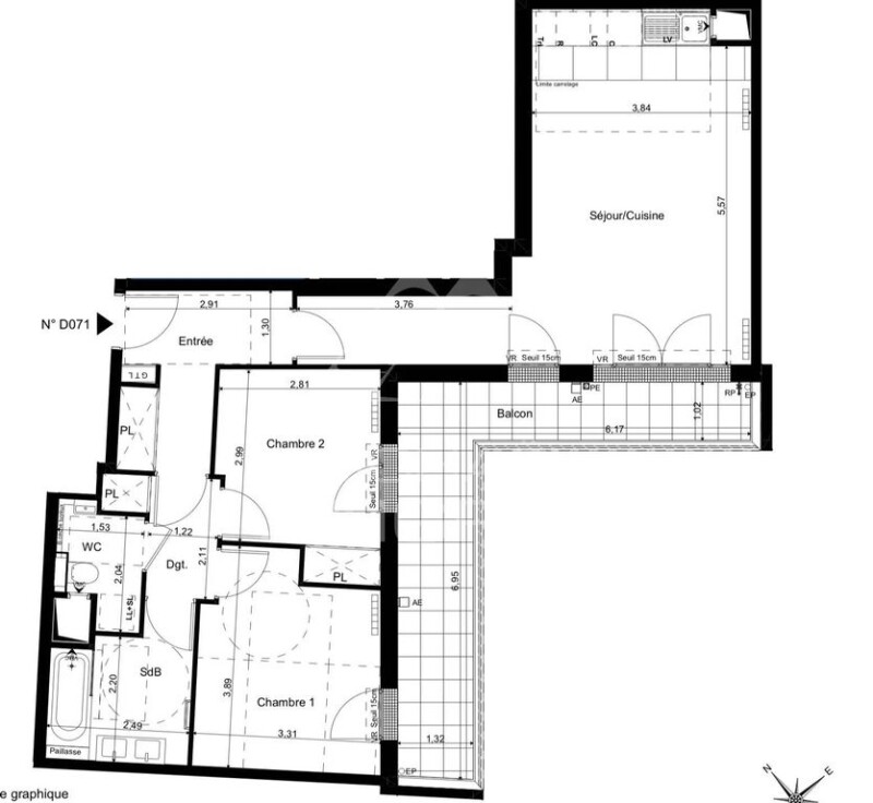 On the banks of the Seine, the new development "Métamorphose" offers a 67m2 apartment with a 14m2 balcony. The apartment includes an entrance, a spacious living room open to the kitchen, 2 bedrooms, a bathroom, and a large balcony overlooking the living room and bedrooms. The estimated delivery date for the apartment is the 1st quarter of 2026.