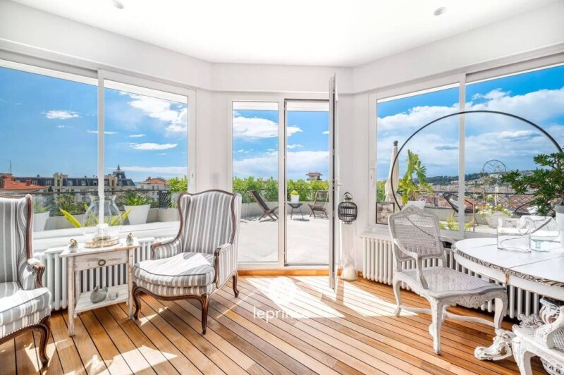 Nice Bas Cimiez - Penthouse - Panoramic terrace. In the residential area of Bas de Cimiez, this magnificent penthouse apartment is located in a Art Déco residence close to all amenities. A 142 m2 panoramic terrace overlooking the city of Nice, the sea and the hills allows you to enjoy the sun's rays throughout the day thanks to its triple exposure. This vast reception area is organized according to your needs: lounge, relaxation, reading or simply contemplating the sunset over the city. A laundry room and a barbecue area complete this rare exterior. This recently renovated apartment has been designed in a loft style with a contemporary decoration and luxurious and refined services. The living room opens onto the terrace and includes a lounge, an office, a music corner, all bathed in light. The separate kitchen with dining room is remarkable for its luxurious services, cooking piano, furniture and decoration in total harmony making this room a place of conviviality. The kitchen is extended by its direct access to a part of the terrace where a summer dining room can be located. The night space is composed of a bedroom overlooking the terrace with sliding doors, a large dressing room, shower room and toilet, A guest toilet, plenty of storage space, reversible air-conditioning and parquet flooring give this apartment a subtle charm. A second bedroom can be arranged according to family needs. A studio renovated on the basement , a cellar and a garage are sold with this apartment . Full details and VR available upon request. The agency fees are paid by the Seller. Information on the risks to which this property is exposed is available on the Géorisques website: georisques.gouv.fr État des risques et pollution: réalisé (2023-05-09).