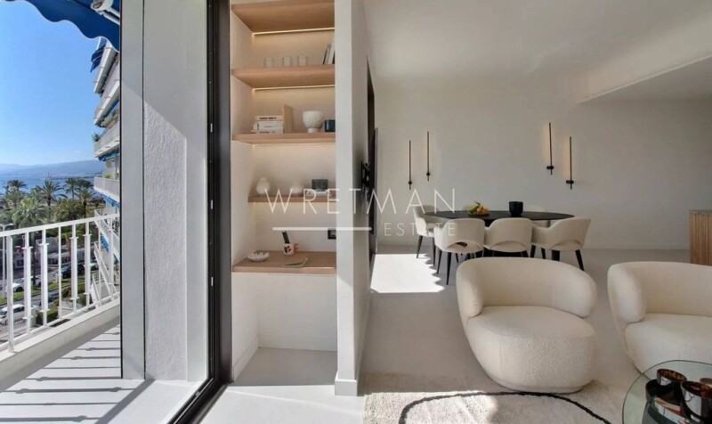In one of the most prestigious residences of the Croisette, beautiful bright apartment of 99m2 on a high floor and facing south with terrace. Entirely renovated with refined fittings and quality materials, it comprises 3 bedrooms en suite, a beautiful living room with open kitchen, a terrace with a view of the sea, the Esterel mountains and the Port Canto. The residence is secured with a guard and a beautiful garden in front of the building. Close to all amenities, transportation, schools and shops, beaches. État des risques et pollution: réalisé (null).