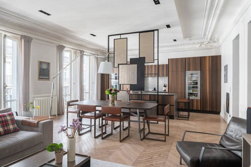 Paris 8th high end address for this splendid apartment Ideally located in the heart of the Golden Triangle, elegant apartment on the 4th floor access by elevator of an old building of good standing offering beautiful volumes and a very nice brightness. - entrance hall with vestibule - a large double living/dining room with fully equipped and fitted open-plan kitchen - a master suite with dressing room, bathroom, Italian shower and toilet - a second bedroom with bay window office area - a shower room - guest toilet Space-saving layout with plenty of storage and closet space. Original features include Parquet flooring, moldings and fireplace. 3.10m high ceilings providing plenty of light, facing west and north. A 10.32m2 cellar completes this property. - Building with elevator and caretaker. Contact us today to find out more.