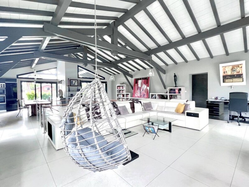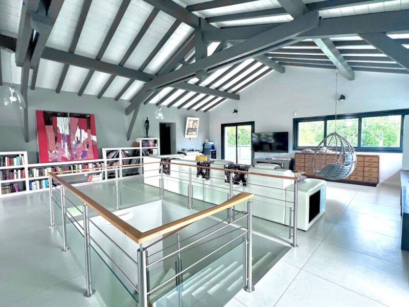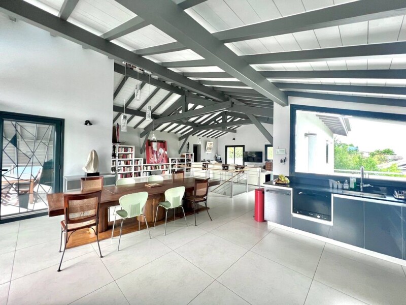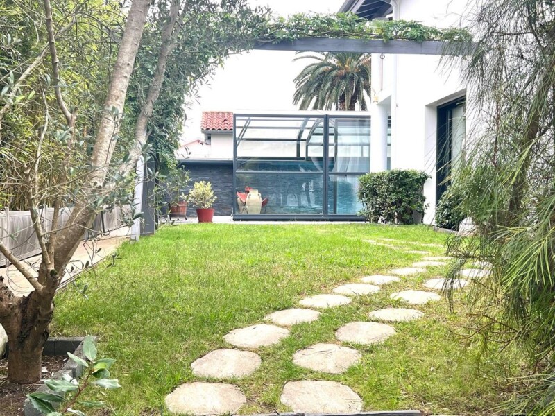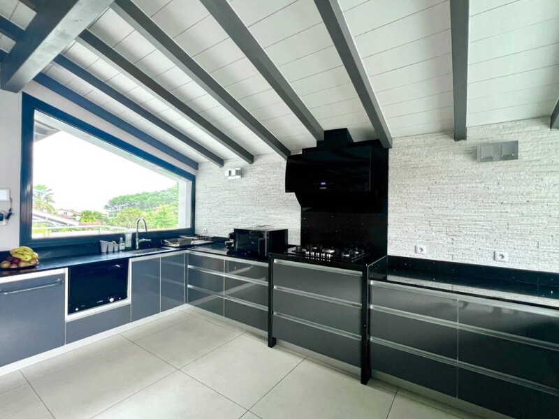 Ideal location 200 meters from Erromardie beach, elegant 220 m2 villa in dominant position with charming garden, orchard and heated pool. First floor: splendid ocean and mountain views, 100 m2 cathedral living room with fireplace, 3 terraces and open kitchen. On the ground floor, a suite with bathroom and dressing room, two bedrooms with en-suite shower rooms and an independent 30 m2 studio with kitchen, shower room, 27 m2 terrace and private outdoor access. Basement of 114 m2 with garage. 10 minutes away from St Jean de Luz town center, with shops nearby.