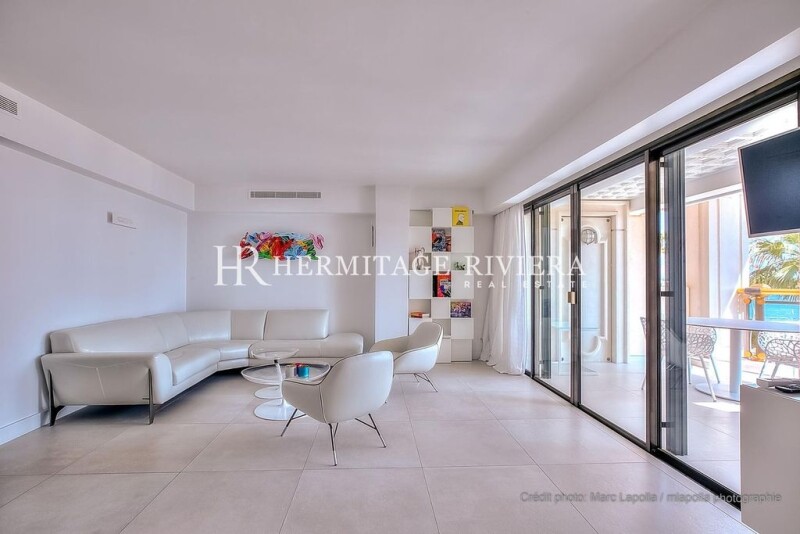 In the most luxurious and secure residence on the Croisette, this magnificent and bright four-room apartment in perfect condition composed of an entrance hall, a spacious living/dining room opening to the terrace with sea view, a fully equipped semi-open kitchen, three large bedrooms and bathrooms en-suite. Underground cellar and closed garage for 3 cars.