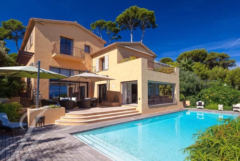 On the eastern slopes of Cap d'Antibes, beautiful 350 sqm villa set in 1600 sqm grounds. It enjoys a beautiful panoramic sea view over the sea and mountains. Comprising: entrance hall, living room, fitted kitchen, 6 bedrooms and 6 bathrooms/showers. Heated swimming pool with roller shutter. A storage room and a machine room.