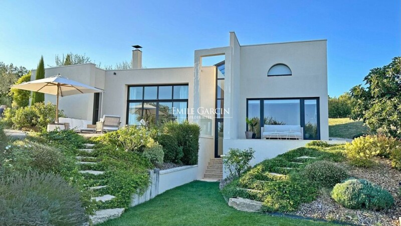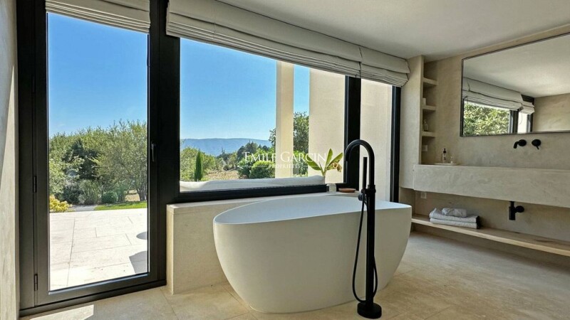 Exceptional Architect-designed House in the Golden Triangle of the Luberon, between the charming villages of Bonnieux and Roussillon, 220 m² of serenity and elegance, this house is a true haven of peace. Accessible via a lovely shaded path, this rare property immediately immerses you in a quiet and protected environment, where nature reigns supreme. With breathtaking landscapes and a soothing atmosphere, this location is ideal for those seeking an unparalleled quality of life. This fully air-conditioned house has been completely renovated with taste, in a modern and elegant style. Every detail has been carefully considered to combine comfort and aesthetics. An abundance of natural light floods the spaces thanks to large bay windows that allow light to pour in throughout the day. The house's south-facing orientation ensures optimal sunlight, creating a warm and welcoming ambiance. The heart of the house is a spacious living room, featuring a beautiful fireplace. This light-filled living space opens onto a modern, functional kitchen, extended by a large terrace, perfect for outdoor meals and moments of relaxation with family or friends. The house has four en-suite bedrooms, arranged to ensure comfort and privacy: Two south-facing bedrooms, each with its own shower room. Two other bedrooms, located at the back of the house, also with private shower rooms, offering an ideal space for hosting family and friends. A Stunning Exterior with Breathtaking Views The landscaped plot of over 3 hectares, gently sloping, allows you to enjoy an unobstructed view of the surrounding hills and the Luberon. The pool, situated below the house, invites relaxation on hot summer days, accompanied by the sound of birdsong and the scent of Mediterranean plants surrounding it. For moments of conviviality, several private terraces have been set up, offering ideal spaces to enjoy a morning coffee or an aperitif at sunset. A pétanque court completes the ensemble, perfect for friendly games with friends. A large rooftop terrace offers an extraordinary panoramic view of the region and invites you to enjoy the evening under the stars. Automatic gate, carport. A house designed for those seeking discreet luxury, tranquillity, and natural beauty.