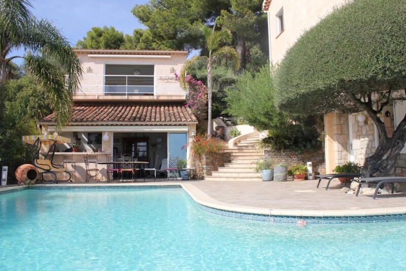 Superb location for this property comprising a main villa (4 bedrooms) dating from the 1950's and renovated to a high standard, plus a small detached house (60 m2) recently built, ideal for entertaining family, friends or for professionals. 25 m2 pool house opening onto a magnificent, large swimming pool. Plenty of parking space. Its main features include - Superb sea view - Town centre within 2 minutes' walk - South-facing - Boules pitch - Numerous terraces, one of which is bio-climatic - Rainwater reserve for automatic watering system - Indoor and outdoor alarms - Air conditioning in all bedrooms and in the detached house - Enclosed plot planted with Mediterranean and tropical species (including some lovely shady areas) Very rare find indeed, in such a convenient location boasting incredible views out over the Mediterranean. Contact us today to find out more.