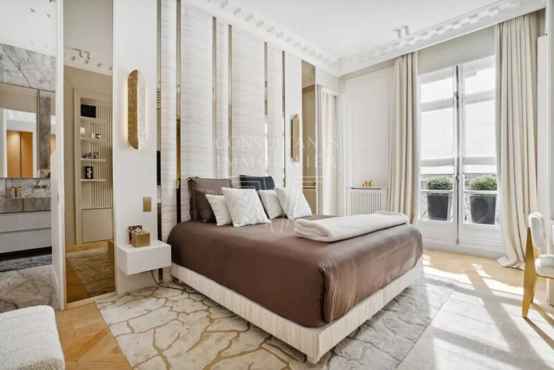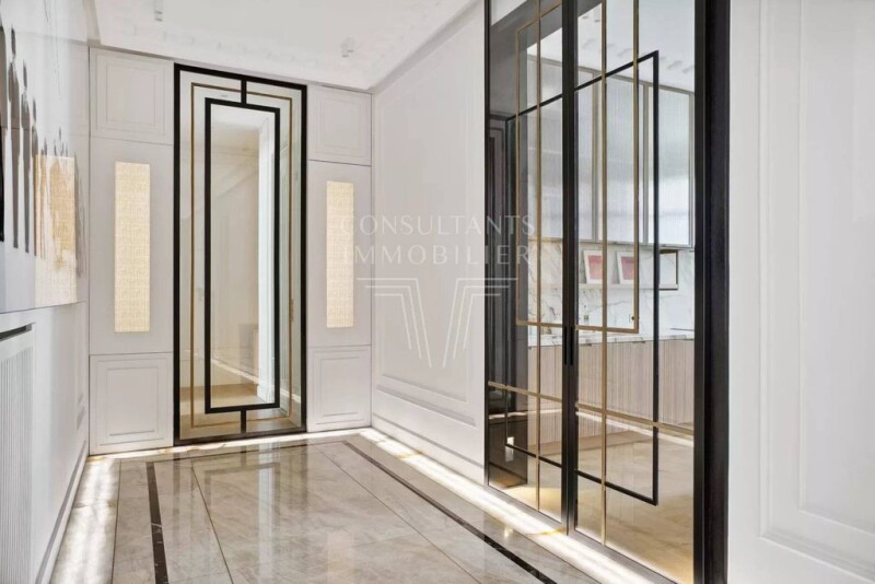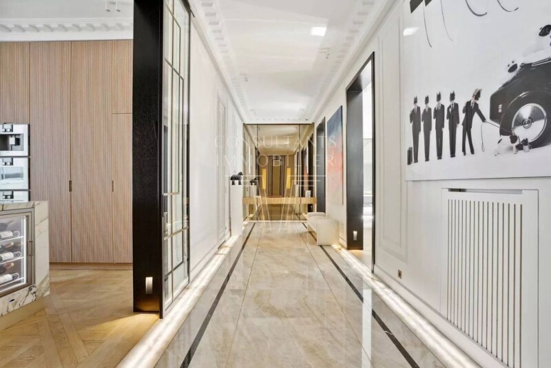 PASSY - ALBONI: In a very beautiful HAUSSMANNIEN building, Consultants Immobilier offers you an air-conditioned family and reception apartment, completely renovated and custom-furnished by a renowned architect. It is composed as follows: An entrance gallery, with cloakroom and guest toilets, serving a double reception as well as a large contemporary dining kitchen. the private area consists of a master suite with bathroom, shower, toilet and 2 dressing rooms, two other suites with bathroom, shower and dressing rooms, a laundry room. A cellar and 2 studios complete this exceptional property, ideally located, close to shops, transport and renowned public and private schools. perfect plan and luxurious services of very high standard. Sold furnished and equipped.