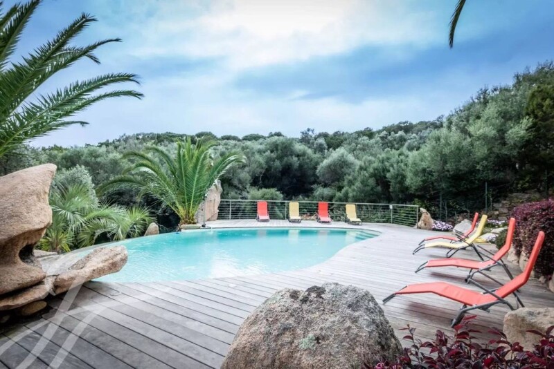 Situated close to Palombaggia's most beautiful beaches, this exceptional property is set in landscaped grounds of 2586 m2, planted with trees. Nestled in a peaceful setting, it offers peace and quiet, with a beautiful swimming pool to complete the property. État des risques et pollution: réalisé (null).