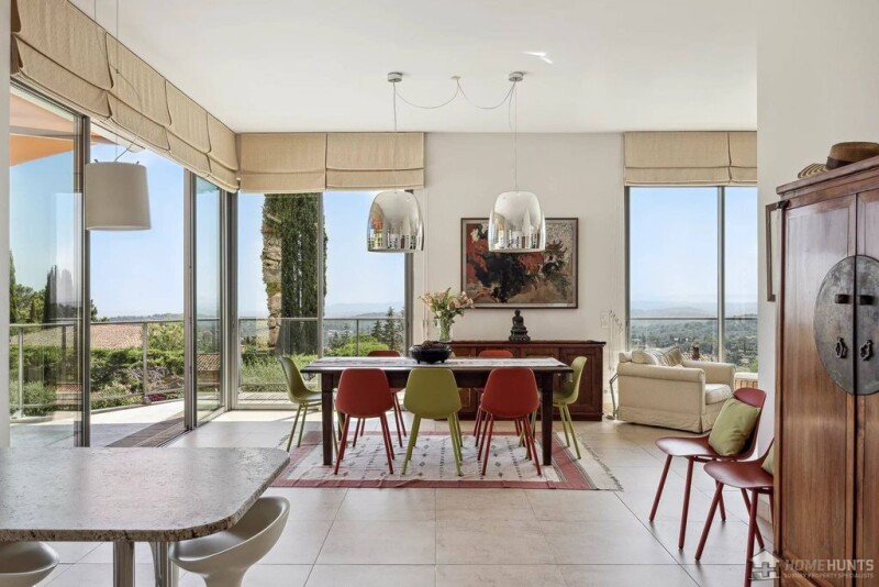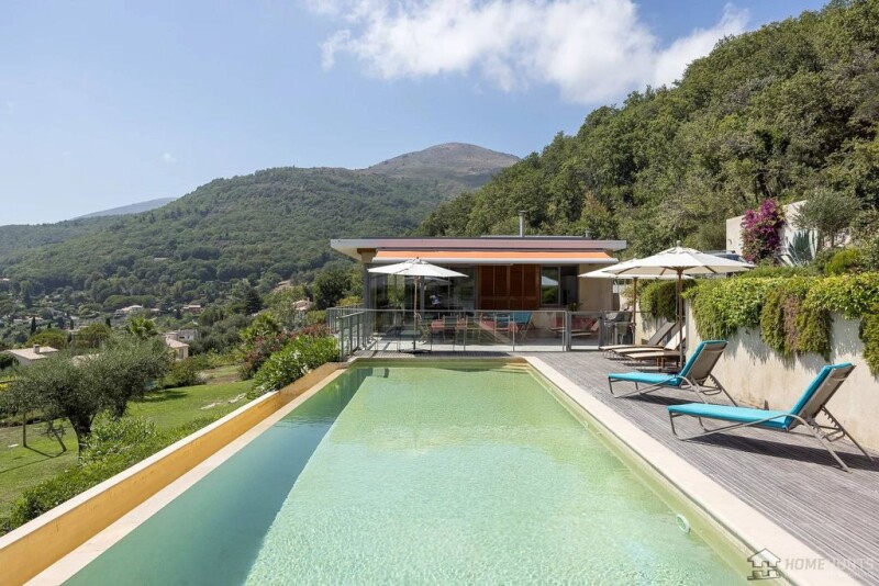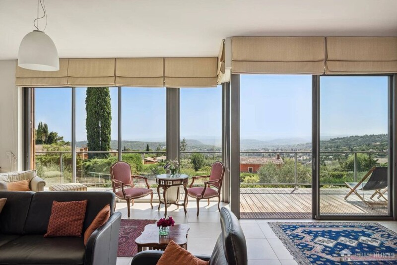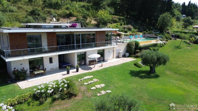 Situated on the heights of Vence, with superb views down to the Mediterranean sea and over the surrounding hills, this unusual property, combining noble materials and modern comforts, offers a beautifully landscaped plot of approximately 3,200 m2. Built over 2 floors, this incredible property boasts 4 bedrooms, all en suite. A reception room with full sliding bay windows allowing breathtaking vistas to become part of the living space....the lounge benefits from clever sliding sun blinds for when the sun it has its hottest, a modern focal fireplace, fully fitted and equipped kitchen with its breakfast bar and dining space again with excellent views, Directly access from the lounge and terrace area, a superb salt water heated swimming pool with plenty of space to entertain guests, there is a lower level garden with large lawns, the driveway has parking there there is a secure garage which completes this exceptional offer. To discover more about this hillside sea view property contact us today.